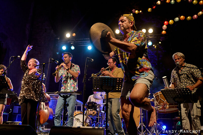Fawzi Berger le roi du dance-floorinho, spécialiste du forro et des cirandas do Brazil, Fabrice Vieira l’« oeuvrier » de la Cie Lubat et d’Uzeste Musical, Alejandra Charry chanteuse-oiseau et ses rythmiques colombiennes, Fidel Fourneyron, tromboniste de velours et de feu et Amélie Affagard, maîtresse à danser et magicienne aux mille voix.